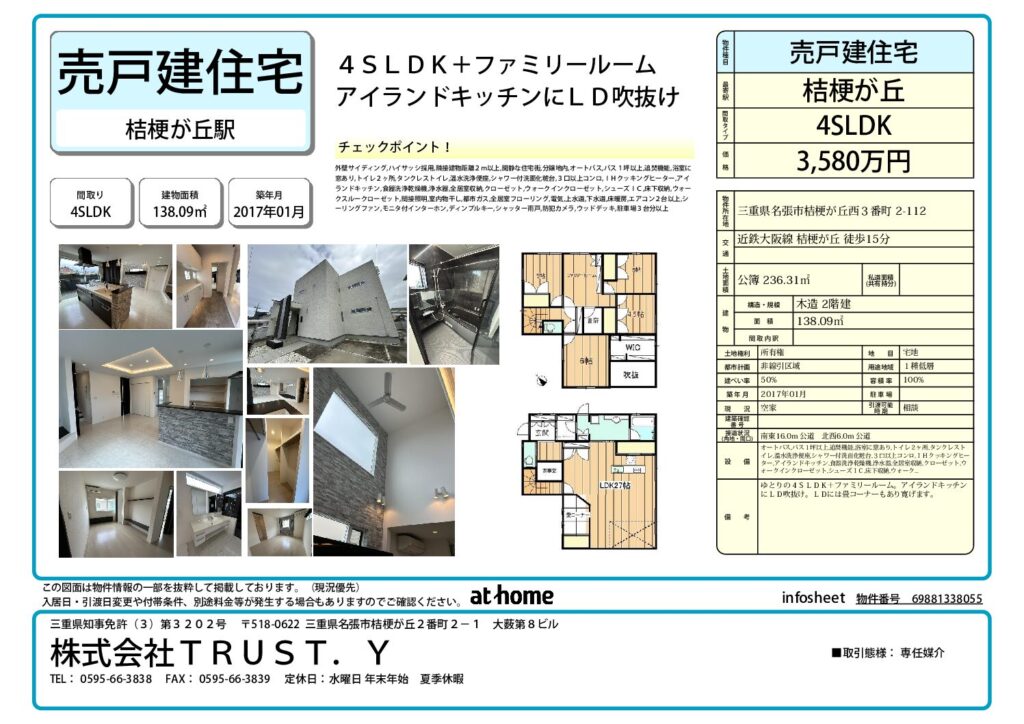 | 整理番号 | 物件種別 | 中古住宅 | 間取り | 4LDK+FR+書斎 | 価格 | 3580万円 | |
