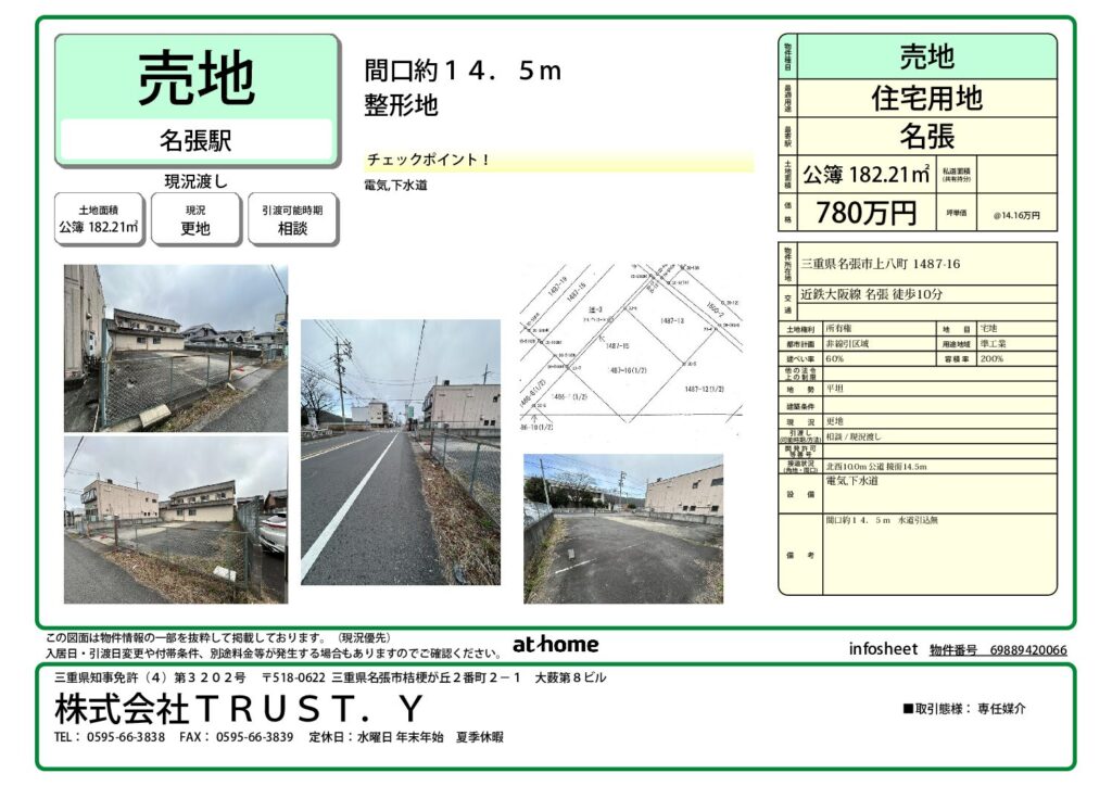 | 整理番号 | 物件種別 | 土地 | 用途 | 住宅用地 | 価格 | 780万円 | |